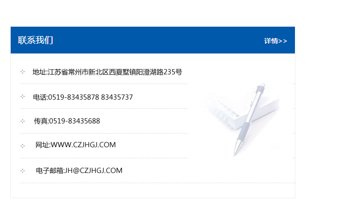 地址:常州市新北區(qū)友邦商務(wù)大廈1幢16、17層  電話:0519-85101652  傳真:0519-85112595  郵編:213022  網(wǎng)址:www.cz-jiayue_cn.0577yinshua.com  郵箱:xiajifengaa@163.com